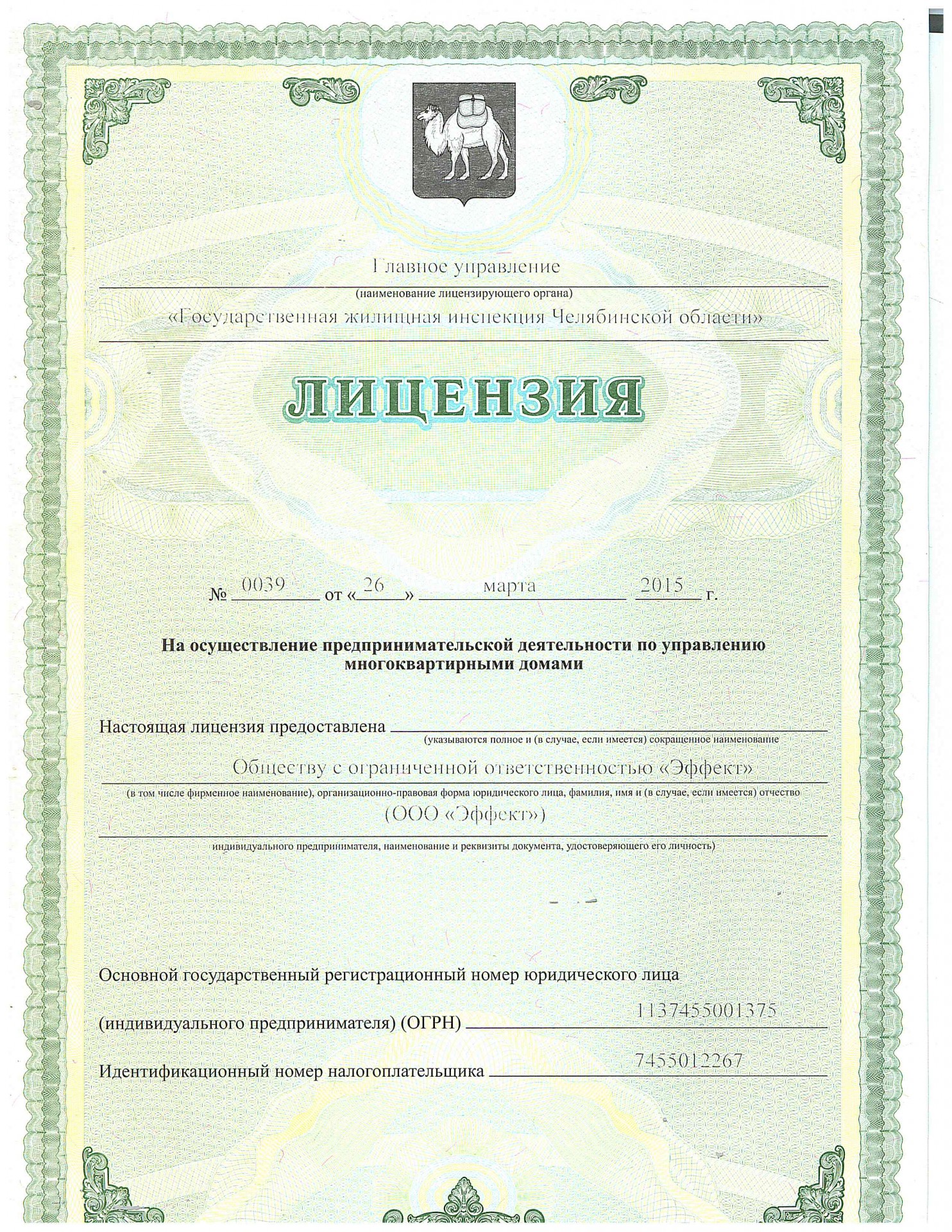 - Лицензия на осуществление деятельности по управлению многоквартирными домами от 26.03.2015 № 39
