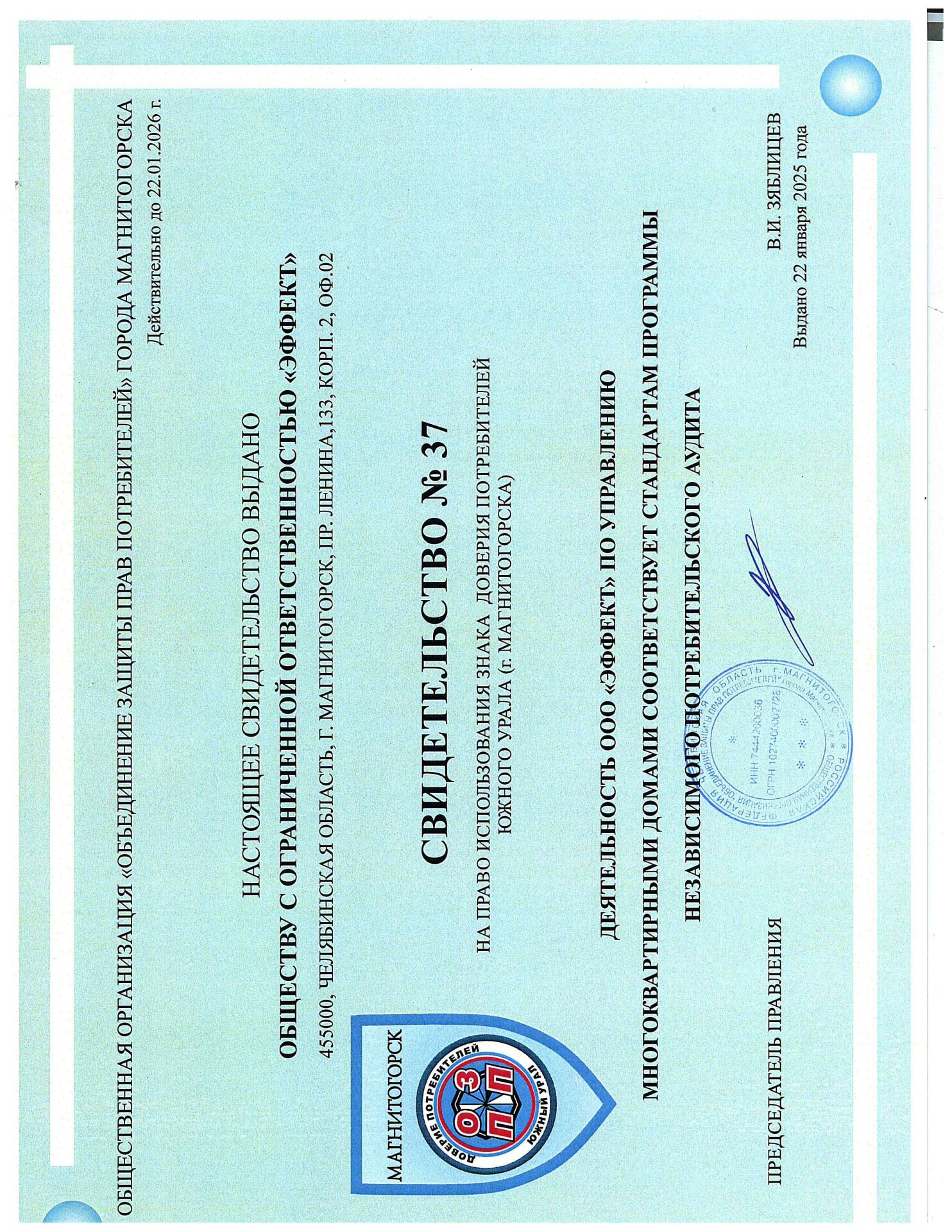 - Свидетельство на право использования знака доверия потребителей Южного Урала